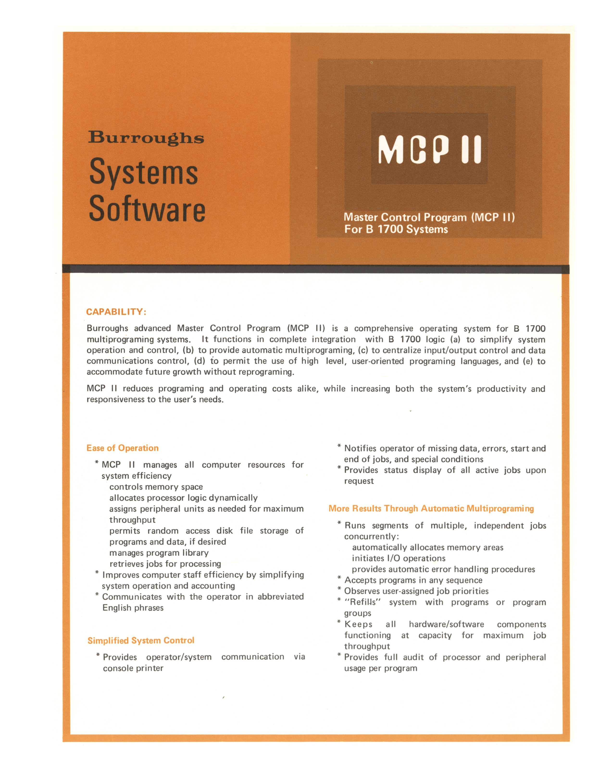 MIRRORS.PDP-11.RU Dir: /pdf/burroughs/SmallSystems/B1000/B1000_Brochures/1058534_MCPII/