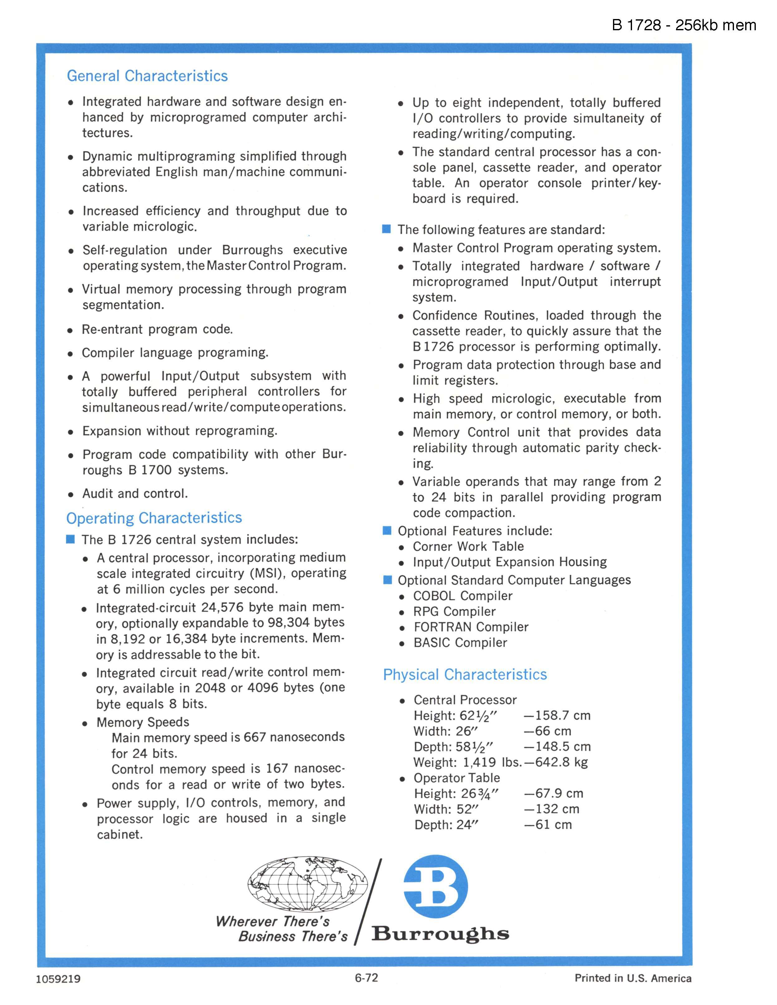 MIRRORS.PDP-11.RU Dir: /pdf/burroughs/SmallSystems/B1000/B1000_Brochures/1059219_B1726/